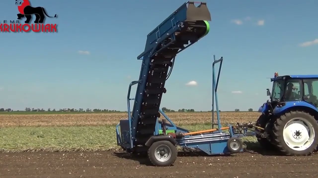 Подборщик Z-437 компании Krukowiak - предназначен для уборки с рядков высушенного лука и погрузки на идущее рядом транспортное средство. Подбор корнеплодов осуществляется при помощи устройства состоящего из полиуретанового вальца и решетчатого транспортера. С подбирающего транспортера материал подается на поперечный транспортер, который подает материал на двигающееся за комбайном транспортное средство. Подборщик оснащен системой гидравлики: гидравлический перевод из транспортного состояния в рабочее положение, гидравлическая регулировка угла наклона поперечного транспортера. Управление системой гидравлики комбайна осуществляется с помощью гидравлического распределителя из кабины трактора. При заказе машины необходимо указывать с каким типом корнеплодов (картофель или лук) будет работать подборщик.
